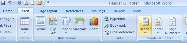 | In Microsoft Word you can create headers and footers, so that information (such as the author's name, document title, or page numbers) will show in the top and/or bottom margin of your word document. You can create a header and footer that appears the same on every page, or you can customize the pages with different headers and footers. |