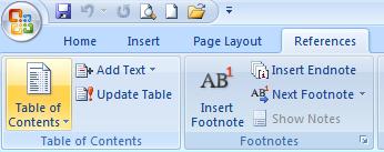 | 3. Click the Table of Contents button found in the Table of Contents group. |