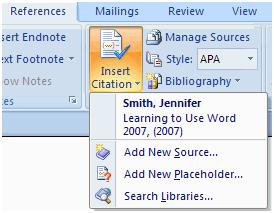 | Microsoft presents one of the new features in Word 2007 is Citation & Bibliography, for citing sources, creating a bibliography, and managing the sources. |