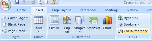 | Follow these steps to use Word 2007’s Cross-reference feature: |
