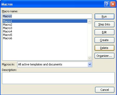 | To Delete a Macro in word 2007 follow these steps: | |||
