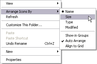 | 2. Display View menu and select the option Arrange icons by. |