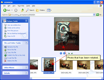 | You can rotate photos in the Window View without the help of a graphics program. Right-click over a photo and choose Rotate Clockwise or Rotate Counter Clockwise depending your preference for the photo. It may take a few seconds for the change to occur. |