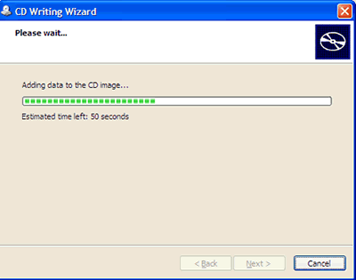 | 5. The CD Writing Wizard will appear. Follow the instructions in the Wizard to complete the task of burning the CD. Click Next as prompted. |