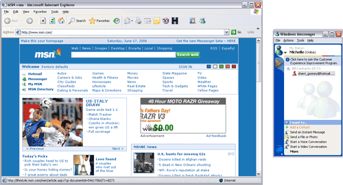 | Along with the Security Center and Firewall Windows XP also includes the most recent and most secure version of Internet Explorer. The four security zones in Internet Explorer allow you to set different security options for sites you trust, your local intranet, the Internet, and sites you don't trust. Combined with Windows Firewall, the improvements to Internet Explorer and Microsoft's timely patches for newly discovered security flaws ensures that browsing the Internet on a Windows XP computer is much safer than browsing the Internet on a computer running a previous version of Windows. Security isn't the only improvement for browsing the Internet using Windows XP. Windows XP also comes with new versions of Windows Messenger and MSN Explorer. |