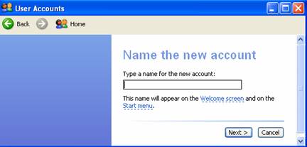 | 3. Type the name that you want to use for the account, and then click Next. |