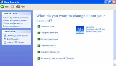 | b. Click Change the picture to change the picture that is used to represent the user account. You can use any image file on the computer for the user's picture. |