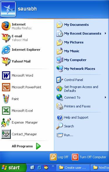 | Note: You can identify the current user account by clicking Start and then reading the account name located on the Start menu. |