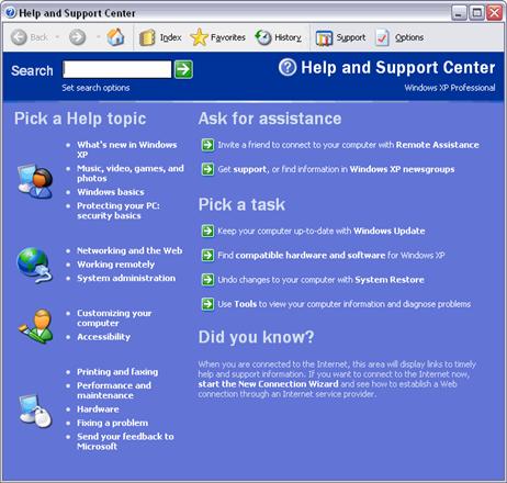 | If you have not been able to solve your problem you can ask other people for help; Windows provides you with three types of technical support. |